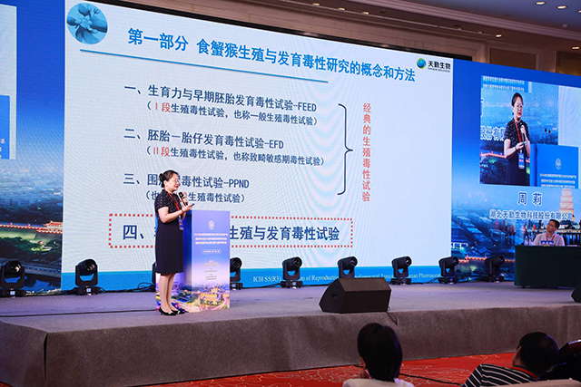 作為本次大會主席,天勤生物執行副總裁周莉博士在開幕式上致辭,預祝大會圓滿成功。周莉博士不僅是生殖與發育毒性領域的專家,行業影響力顯著,也是天勤生物的一張靚麗名片。周莉博士帶領團隊多次攻堅,協助客戶的各類單抗、雙抗、多抗、多肽、干細胞、mRNA預防性和治療性疫苗、ADC藥物、細胞因子、化藥、經典名方、中藥復方制劑等項目高效獲批。特別是牽頭搭建了國內領先的食蟹猴生殖毒性與發育毒性研究平臺。該平臺也是國家科技部重大新藥創制科技重大專項的藥物安全性評價示范平臺之一。