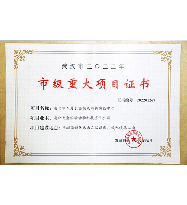 • 市級重大項目證書