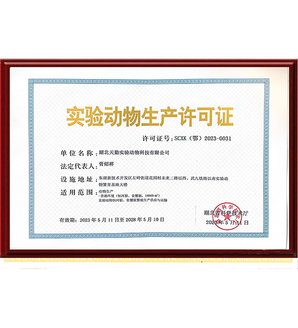 • 實驗動物生產許可證