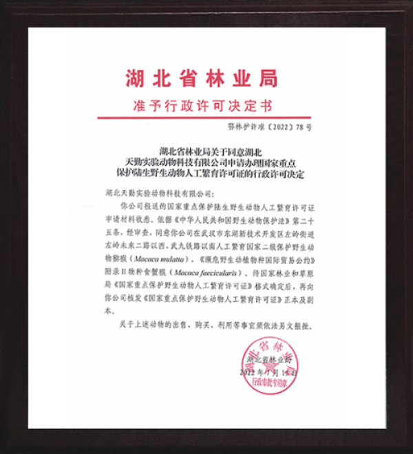• 野生動物人工繁育許可證