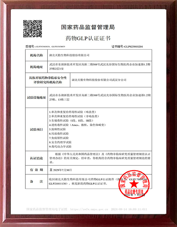 • 藥物GLP認證批件
